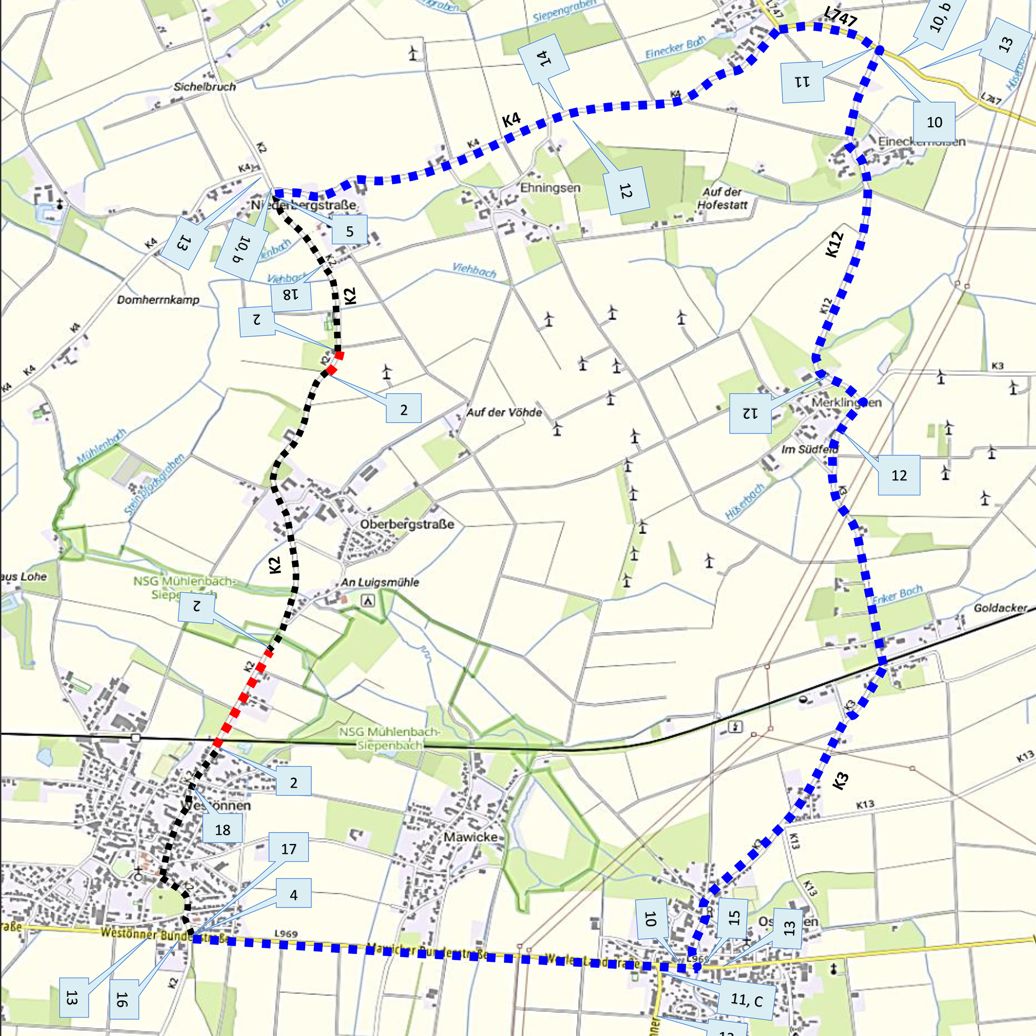 Die Arbeiten dauern voraussichtlich bis Freitag, 24. Oktober, und finden damit innerhalb der Herbstferien statt. Während dieser Zeit bleibt der betroffene Abschnitt der K 2 für den Verkehr voll gesperrt. Eine Umleitung wird ausgeschildert und führt über die K 4, L 747, K12, K 3 und L 969.