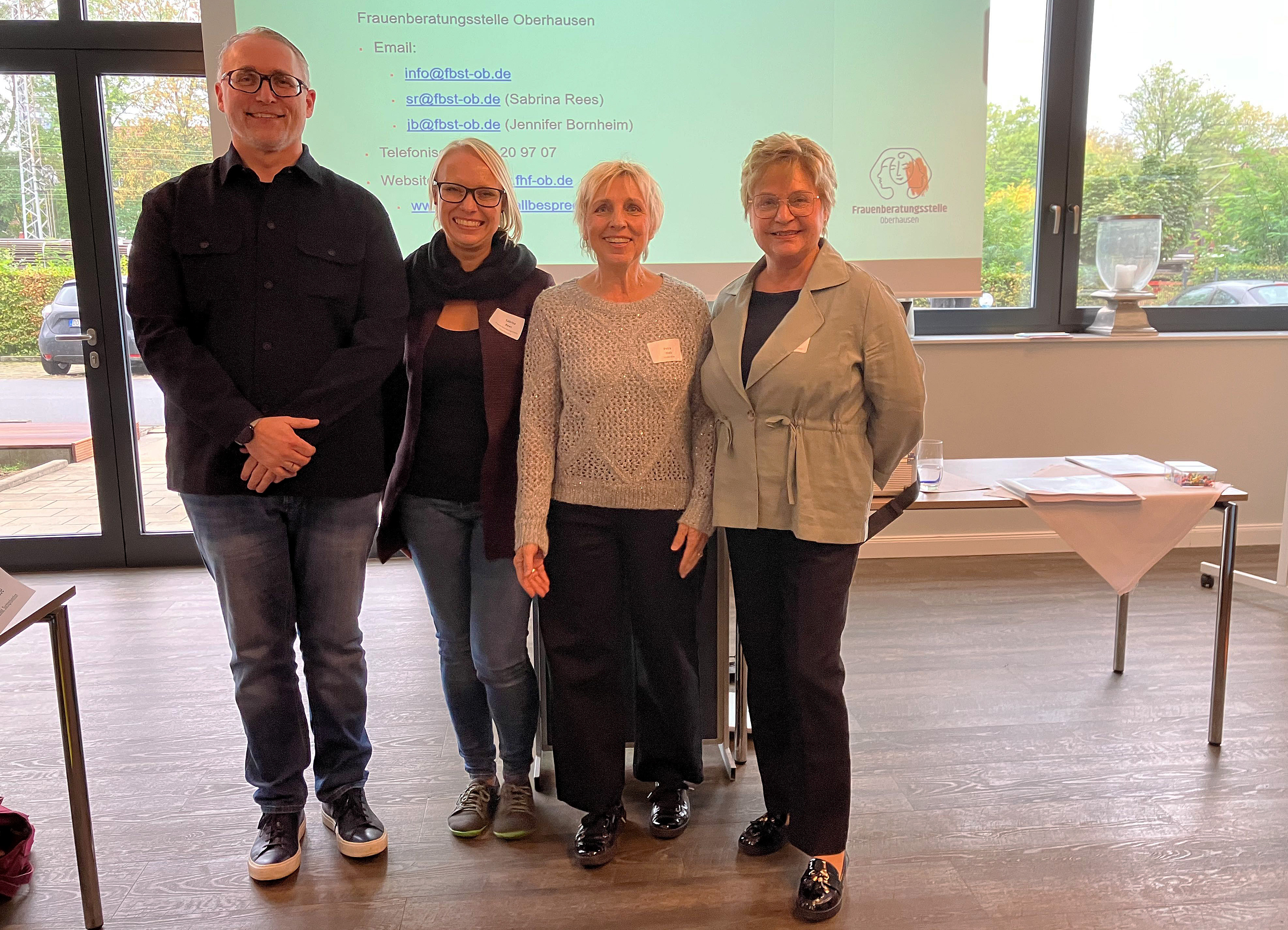 In drei Fachvorträgen beleuchteten Expertinnen und Experten verschiedene Aspekte des Hochrisikomanagements. Barbara Batzik von der Frauenberatungsstelle Soest referierte über das Thema „Von der Risikoerkennung zur Intervention: Hochrisikomanagement als dringendes Handlungsfeld aus Sicht der Frauenberatung Soest“. Sie betonte, dass die partnerschaftliche Zusammenarbeit mehrerer Einrichtungen die wirksamste Art sei auf häusliche Gewalt zu reagieren. Unter dem Titel „Polizeiliche Risikobewertung bei häuslicher Gewalt und im Wandel der Zeit – Wer wegsieht, macht sich schuldig…Männer, setzt ein Zeichen gegen Gewalt an Frauen!“ stellte Andreas Derks vom Polizeipräsidium Bochum die Entwicklung des Gewaltschutzes in der Polizei seit 2002 vor. Seine Botschaft: „Der statistisch gefährlichste Mensch ist der männliche Partner.“ Sabrina Rees von der Frauenberatungsstelle Oberhausen nahm in ihrem Vortrag die Einführung und Umsetzung von Fallbesprechungen in Fällen von häuslicher Gewalt mit dem Fokus auf Hochrisikofälle in den Blick. Sie unterstrich die Dringlichkeit: „Hierzulande erhöht die Eheschließung die Wahrscheinlichkeit, ermordet zu werden." Statistisch seien Ehemänner für ihre Ehefrauen besonders gefährlich. Laut Bundeskriminalamt wurden 2024 in Deutschland 360 Frauen und Mädchen getötet, davon 155 durch ihren (Ex-)Partner.