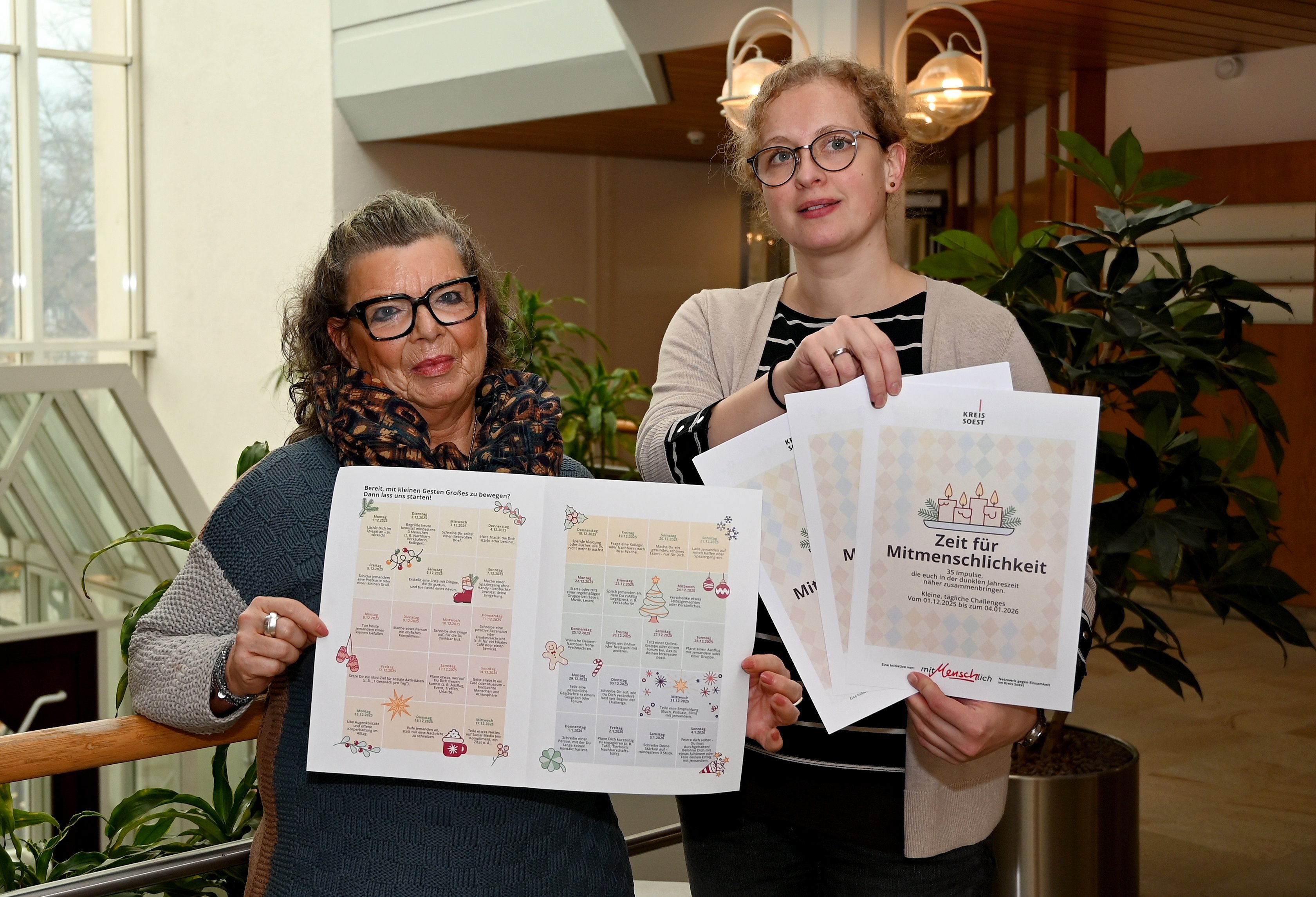 Auf der Internetseite www.kreis-soest.de/mitmenschlichkeit sind alle Aktionen und Veranstaltungen aufgeführt, die das Netzwerk zusammengetragen hat. Sie bieten zwischen dem 1. Dezember 2025 und dem 4. Januar 2026 auf unterschiedlichste Art Gelegenheit, Anschluss zu finden. Ob gemeinsames weihnachtliches Singen, Basteln, Spazierengehen, Kaffeetrinken oder Jazzabende: „Uns war es wichtig, dass die Mehrheit der Aktionen kostenfrei, ohne Voranmeldung und ohne Konsumzwang besucht werden kann“, betonen Anke Rasch und Ursula Rode-Schäffer, die sich als engagierte Bürgerinnen an dem Projekt beteiligen. Fallen in Ausnahmefällen doch einmal Kosten an oder ist eine Anmeldung nötig, ist dies gesondert vermerkt. An Tagen, an denen wohnortnah nichts angeboten wird, gibt es immer eine telefonische, digitale oder individuelle Alternative, um miteinander in Kontakt zu treten.