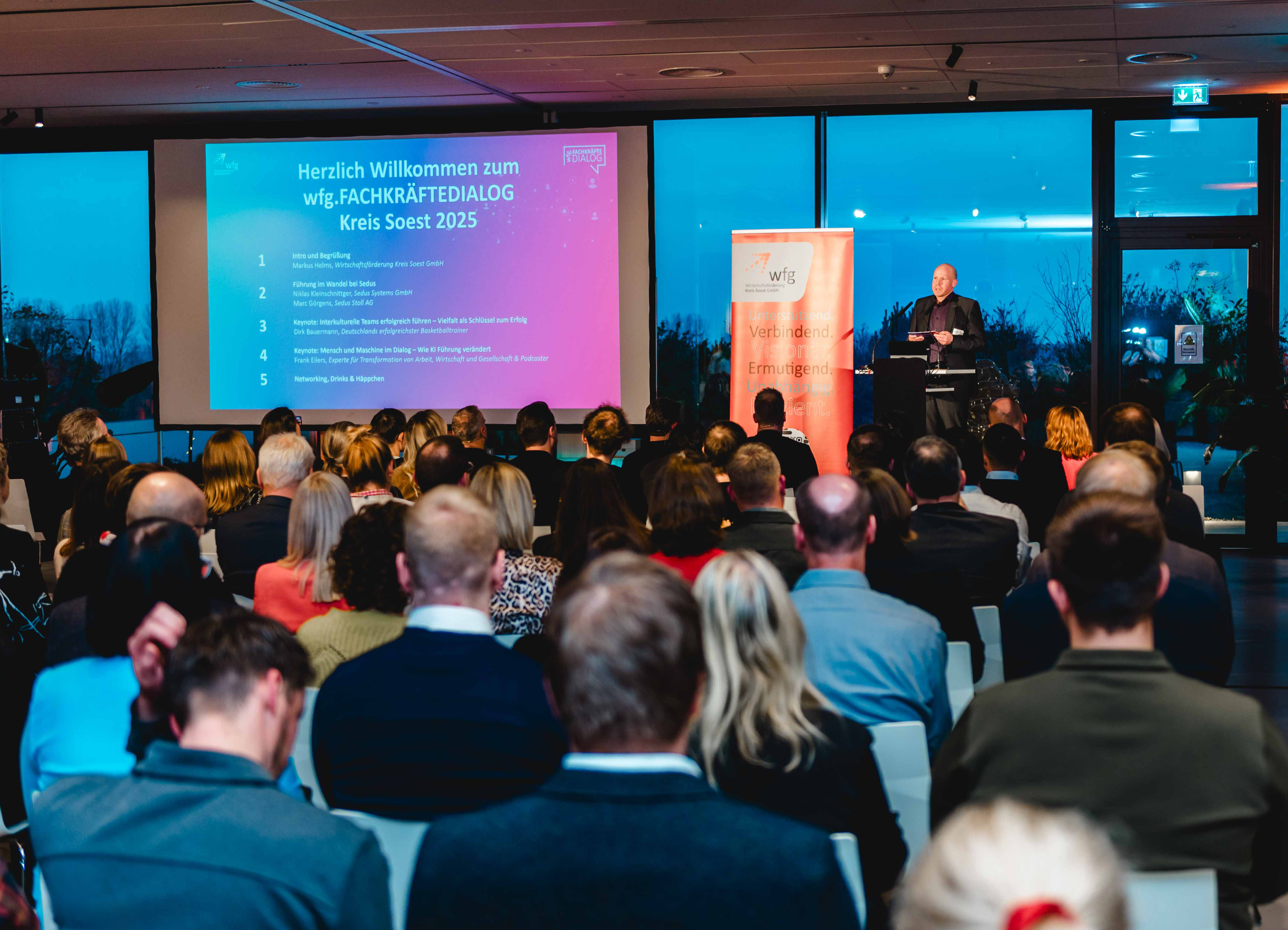 Zum Abschluss betonte Markus Helms: „Die Veranstaltung hat eindrucksvoll gezeigt, dass erfolgreiche Führung heute im Spannungsfeld von Technologie, Menschlichkeit und interkulturellem Verständnis entsteht. Die wfg wird die gewonnenen Impulse nutzen, um Unternehmen im Kreis Soest weiterhin gezielt bei den Themen Führung, Transformation und Fachkräftesicherung zu unterstützen und gemeinsam eine starke Arbeitswelt von morgen zu gestalten.“