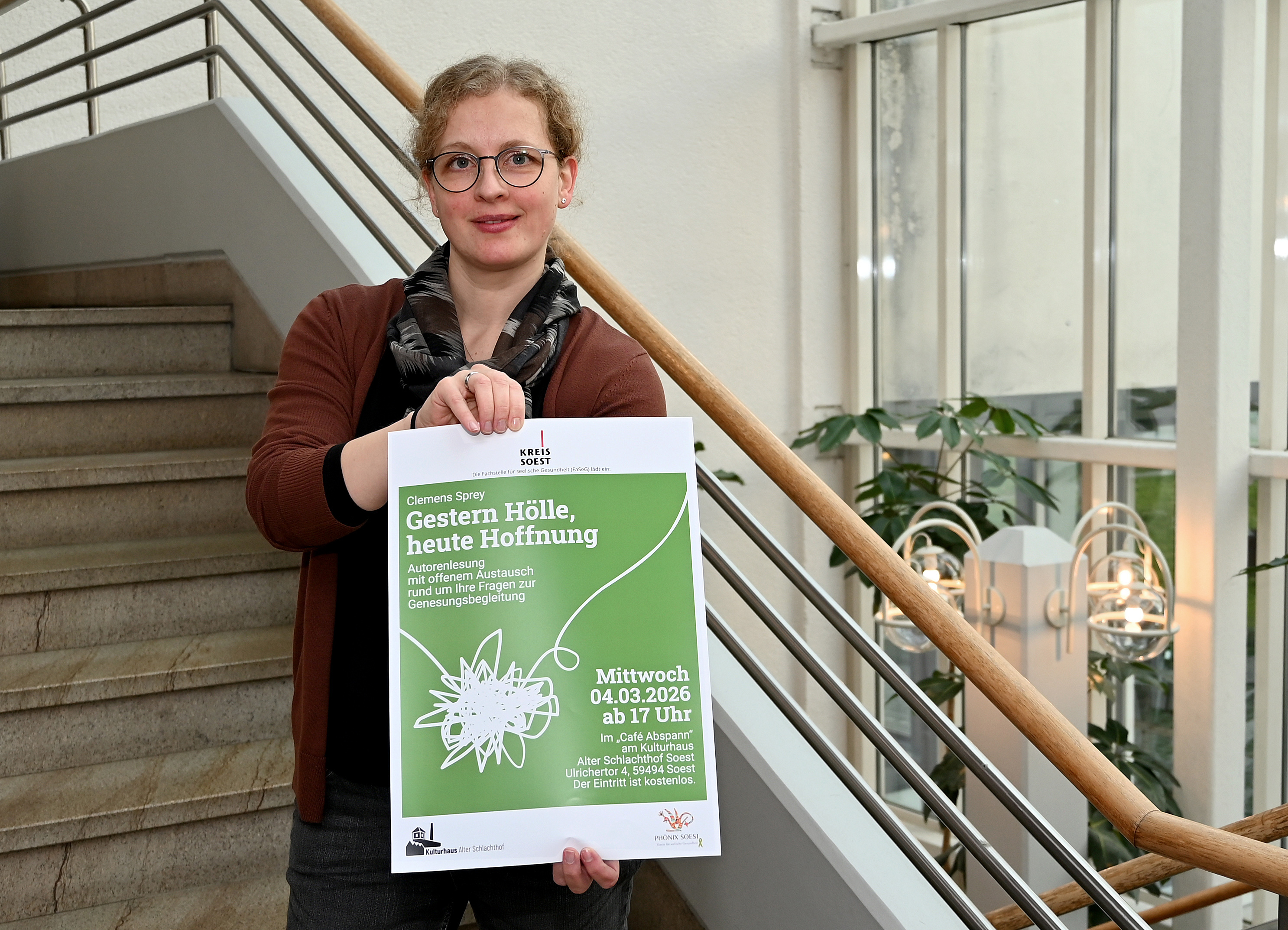 „Wer sich in einer seelischen Ausnahmesituation befindet, verzweifelt vielleicht und denkt, er oder sie komme da nie mehr wieder heraus“, beschreibt Dr. Astrid Schlüter von der FaSeG des Kreisgesundheitsamts Soest. Umso wichtiger sei es, Wege aufzuzeigen, wie es nach einer Krise weitergehen kann. Dazu liest Clemens Sprey aus seinem autobiografischen Mutmachbuch „Gestern Hölle, heute Hoffnung“.
