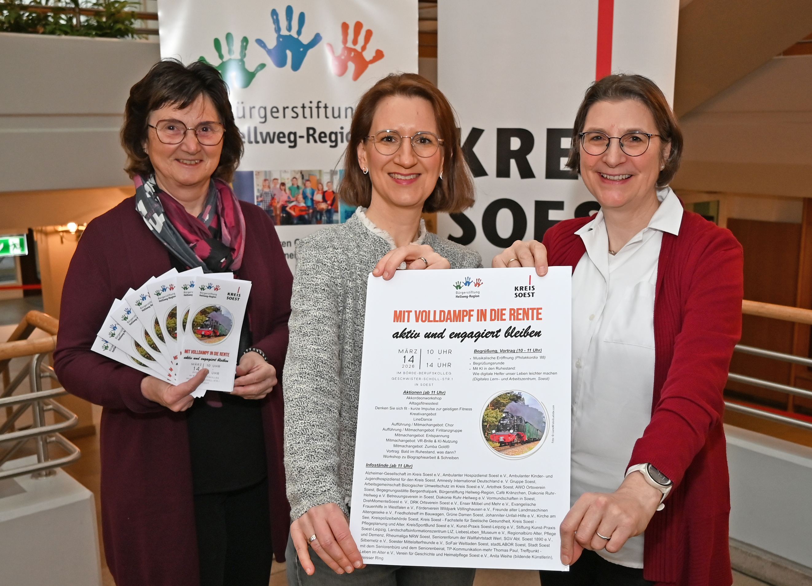 Organisiert wird die Messe von der Bürgerstiftung Hellweg-Region und dem Kreis Soest mit der Unterstützung von zahlreichen seniorTrainerinnen und seniorTrainern. Die Idee zur Messe entstand vor einigen Jahren im Rahmen einer Qualifizierungsmaßnahme für seniorTrainerinnen und seniorTrainer. Nach der erfolgreichen Premiere 2024 geht die Veranstaltung jetzt in die zweite Runde. Neben Vorträgen und Mitmachaktionen zeigen mehr als 40 Aussteller, wie sich der Ruhestand aktiv gestalten lässt.