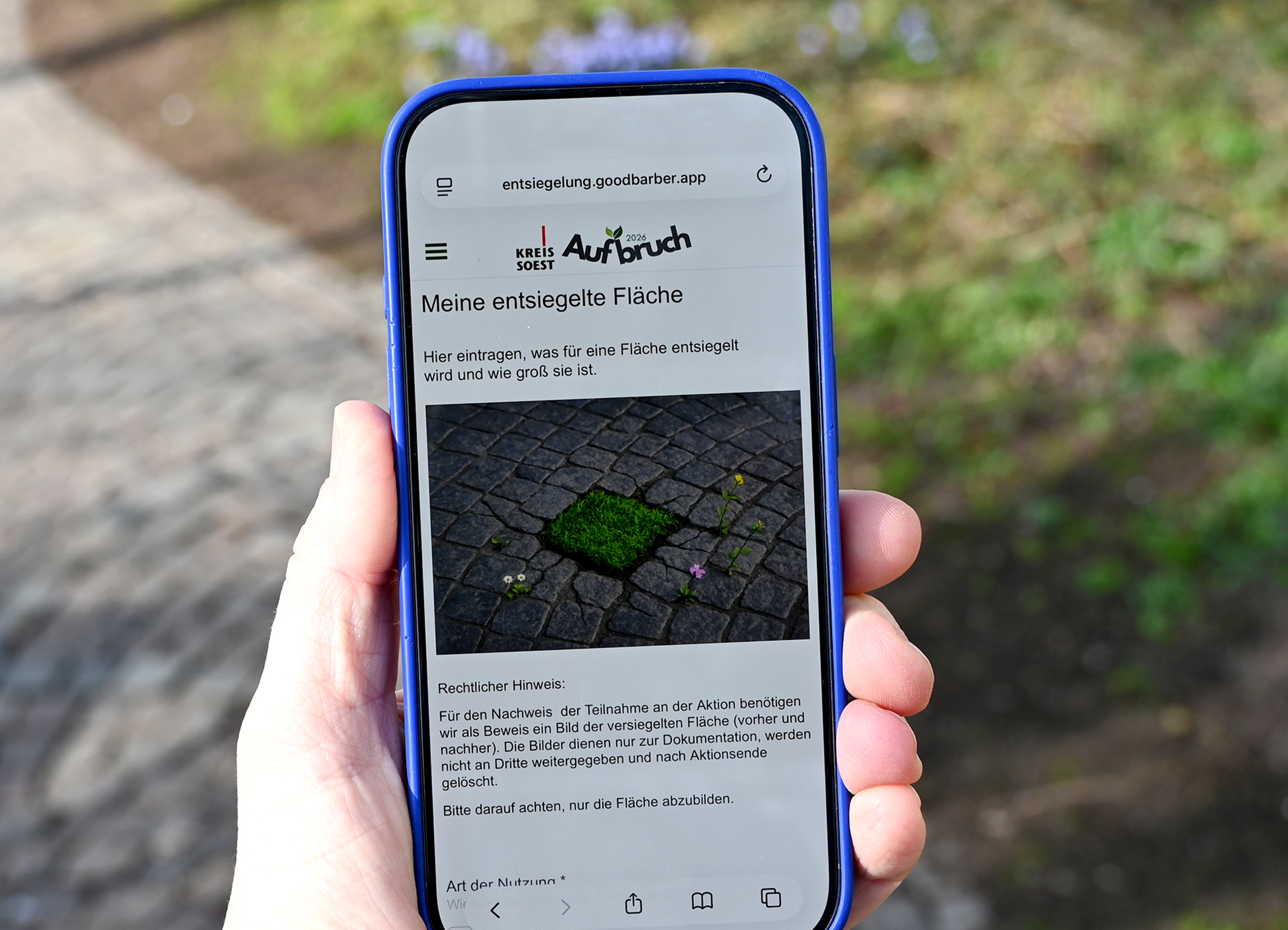 Wer eigene Flächen entsiegeln und damit am Wettbewerb teilnehmen möchte, ruft die Aufbruch-2026-App unter www.kreis-soest.de/entsiegeln auf. Mit wenigen Klicks wird die Fläche in ein Formular eingetragen, anschließend werden ein Vorher- und ein Nachher-Foto hochgeladen – und schon wird die Fläche gezählt. Transparenz ist garantiert: Auch die Auswertung sowie die Einsicht in den aktuellen Stand des Wettbewerbs erfolgen digital über die Anwendung. Die Aktion läuft bis zum 31. Oktober 2026.