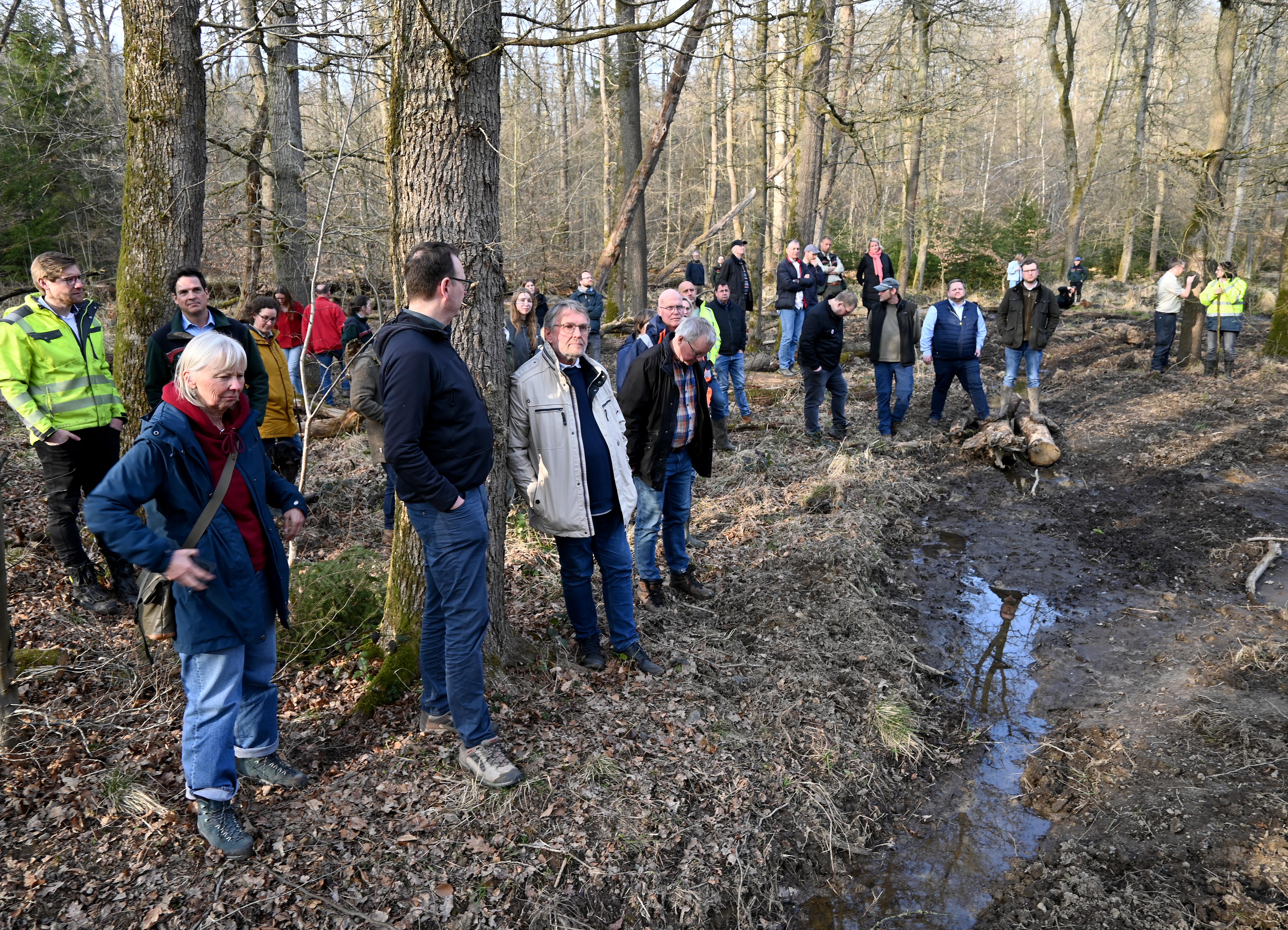 Die Arbeiten, die auf etwa 45 Hektar Waldfläche bereits die Voraussetzungen für die Wiederherstellung eines naturnahen Wasserrückhaltevermögens geschaffen haben, erfolgten zwischen Dezember 2025 und Mitte März 2026. Der zweite Bauabschnitt soll im Mai in Angriff genommen werden. Bis Ende 2027 sollen alle Bauabschnitte fertiggestellt sein.